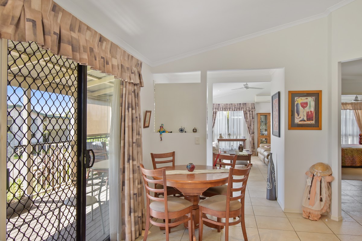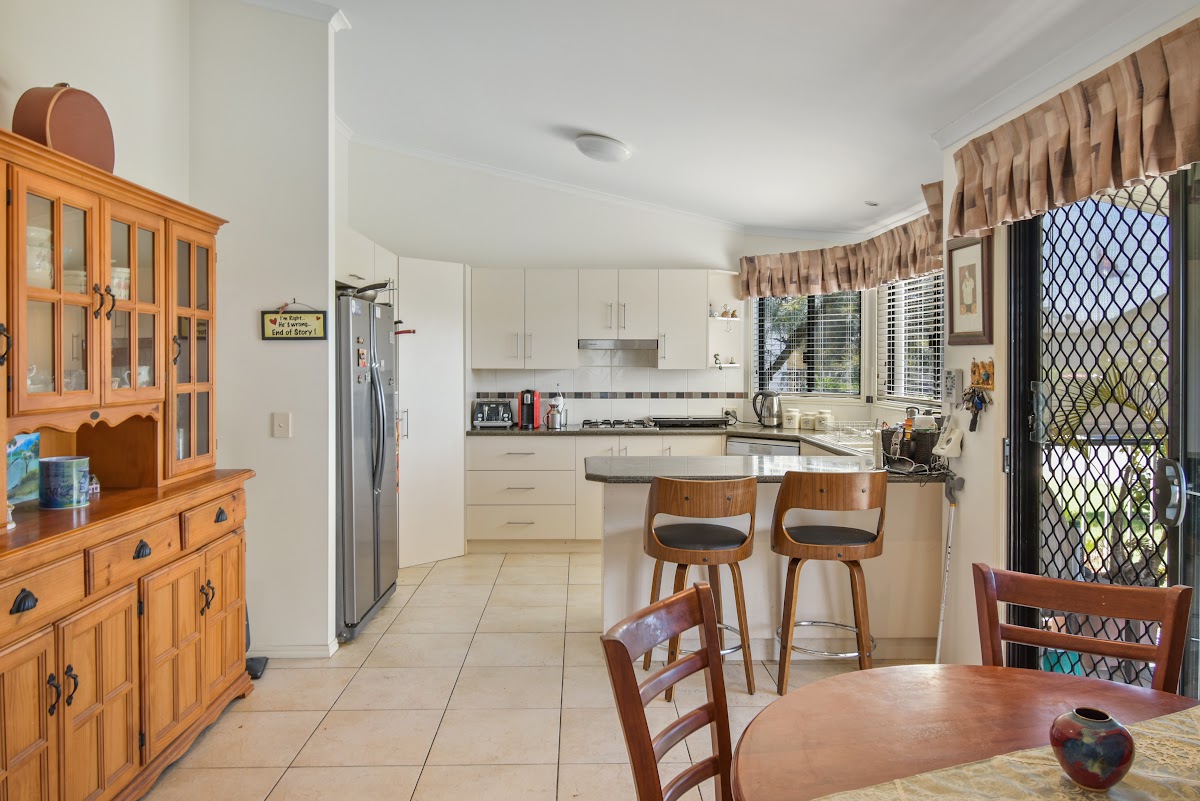+ Large veranda, east facing entrance, leading to tiled open plan lounge, kitchen and dining area containing full kitchen with gas cook top and hob, air-conditioning and raked ceilings.