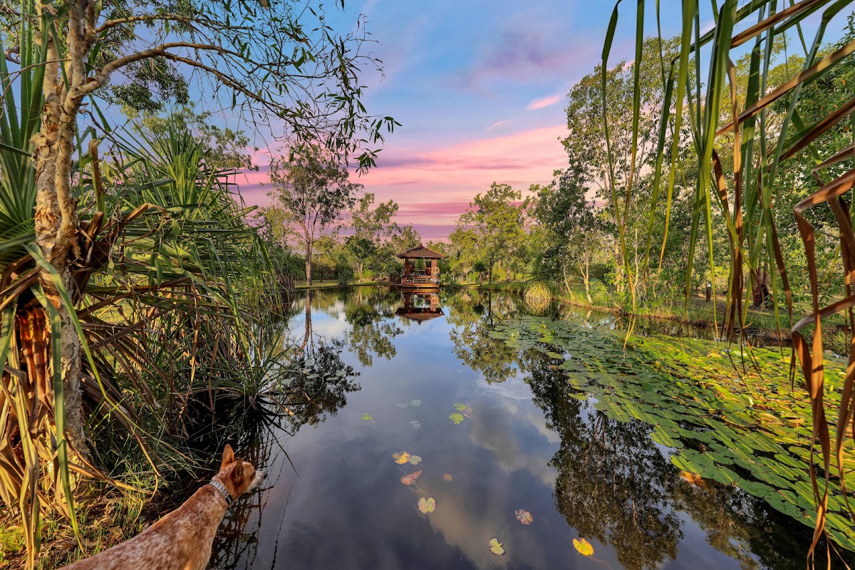 * Lagoon: A serene dam with red claw yabbies and bait fish. A second Bali hut with a freestanding bath overlooks the water, creating the perfect reflective retreat.