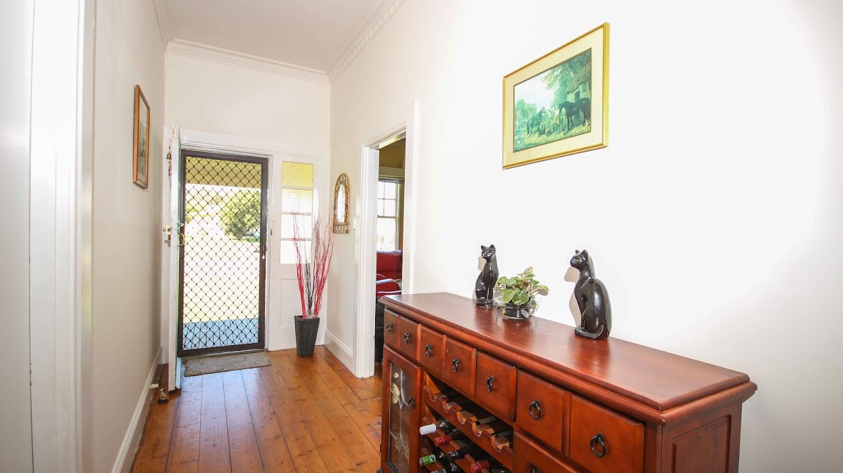 Comprising of entrance hall & separate living room, with polished floor boards, kitchen with an abundance of natural light. Three bedrooms, bathroom, separate laundry. High ceilings, some decorative features, wood fire, split system.