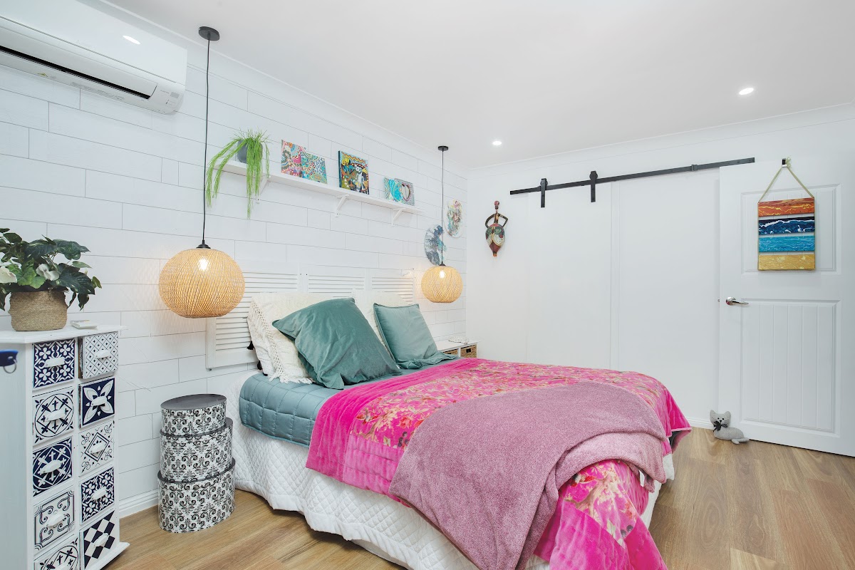This stunning two bedroom, one bathroom villa is set in the heart of Mermaid Waters. The home is only a 12 minute walk to the beach, passing the cosmopolitan cafes and range of eateries Nobby’s beach offers.