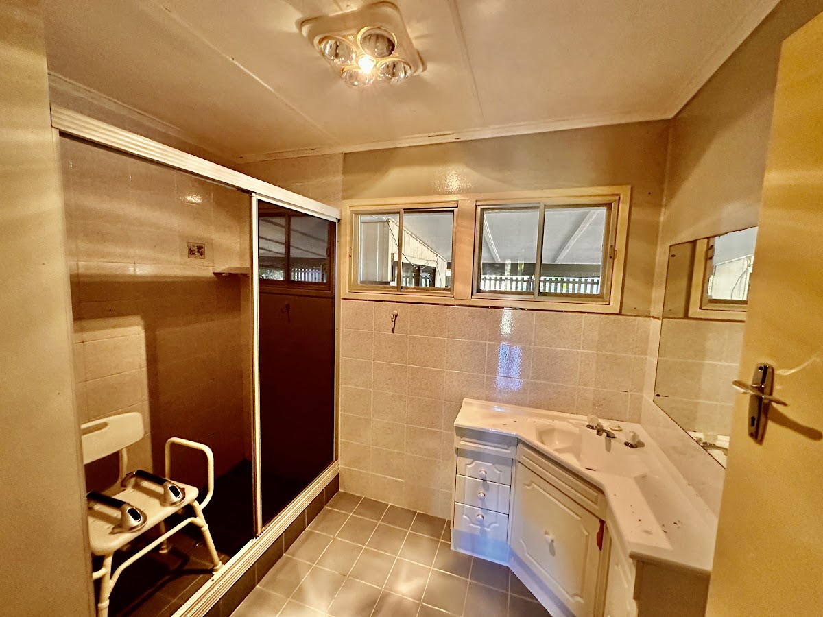 Main bathroom has a large shower and vanity the toilet is off the laundry at the rear of the home