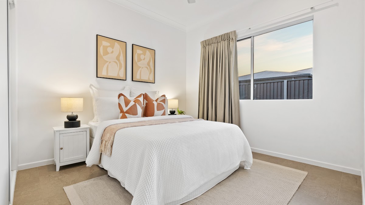 The generously sized main bedroom is positioned for privacy and includes a walk-in wardrobe and ensuite. Family and guest bedrooms feature double wardrobes and yard views, with convenient access to a bathroom that includes a walk-in shower.