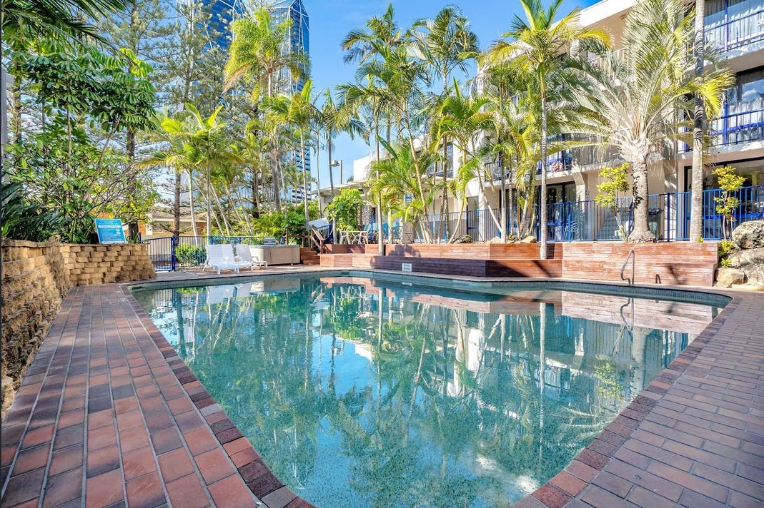 Discover this delightful, top-floor unit in the centrally located Club Surfers, featuring stunning city skyline views from the master bedroom. Overlooking the pool and spa, this apartment also captures refreshing ocean breezes.