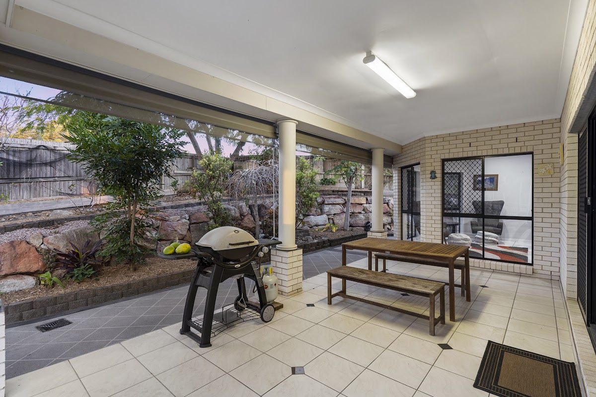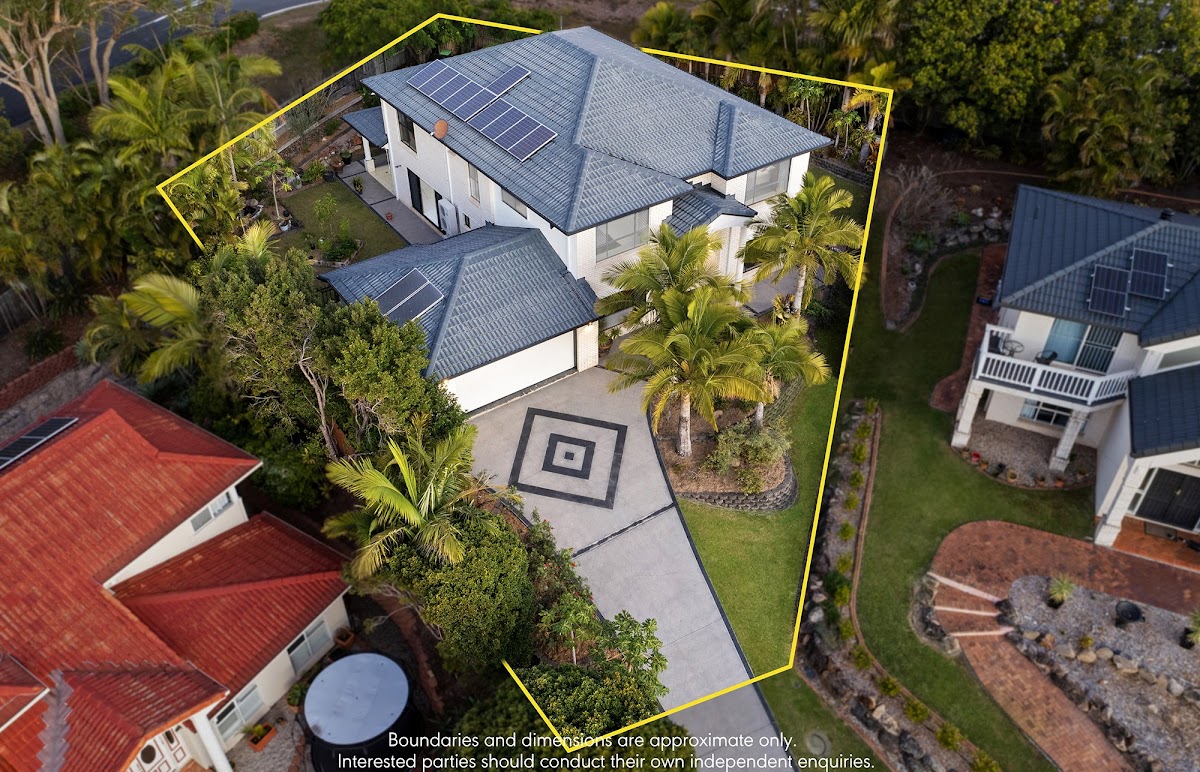 Complementing the impeccable interior is a meticulously maintained landscape drawing on the sub-tropical influence of South East Queensland. Large, mature palms feature prominently, casting a relaxed flow over the property while also creating privacy from neighbours. Plant-filled garden beds and a sandstone retaining wall extending down the side and around the back of the courtyard add more natural elements of design depth while helping keep maintenance to a minimum. The sizeable rear courtyard includes a covered, tiled patio, providing an idyllic outdoor entertainment setting for hosting casual gatherings. Back out the front, you have the pleasure of a double, remote garage, plus the added benefit of purpose-built, off-street parking thanks to a wide driveway. Last but not least, a selection of lush lawns and a fully fenced backyard make for a safe play space that young children and pets can enjoy.