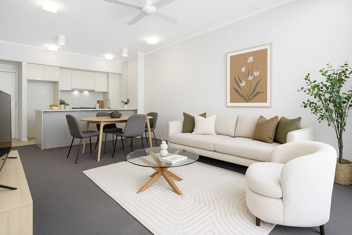 • Open-plan living extending to a large, private balcony