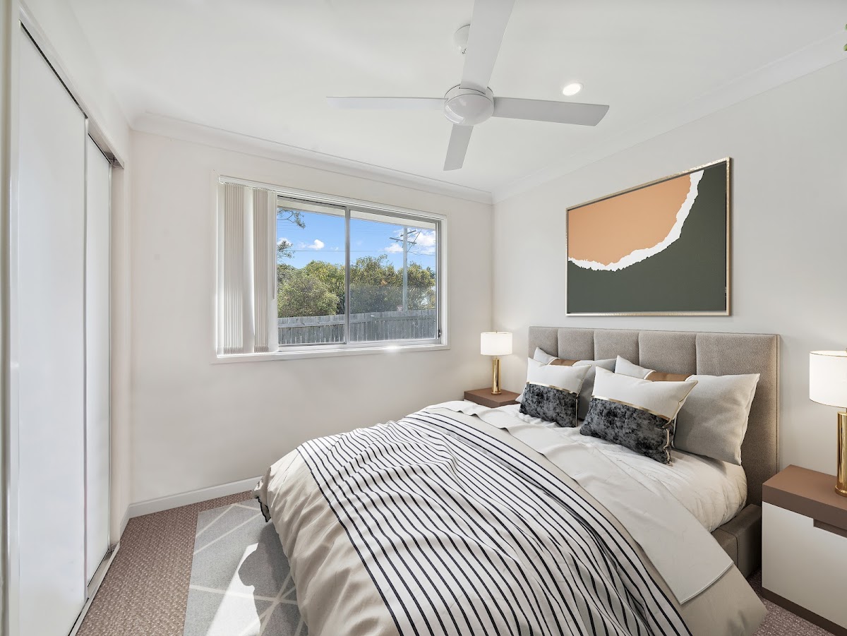 Bedrooms: Three spacious, carpeted bedrooms with built-in wardrobes, ceiling fans, and a master bedroom with an ensuite and large wardrobe.