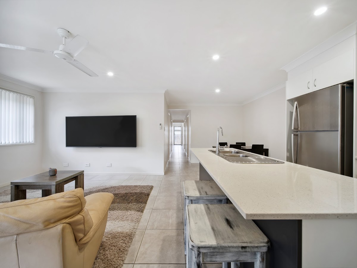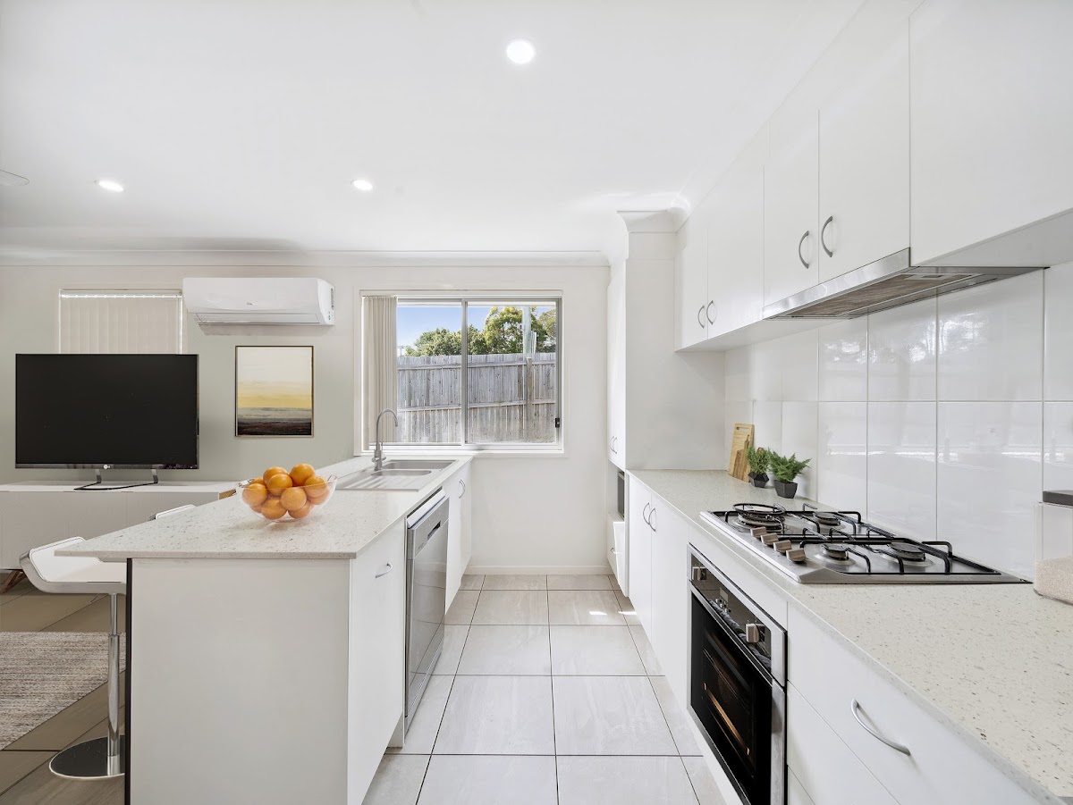 Kitchen: Modern with stone benchtops, ample storage, and a gas cooktop.