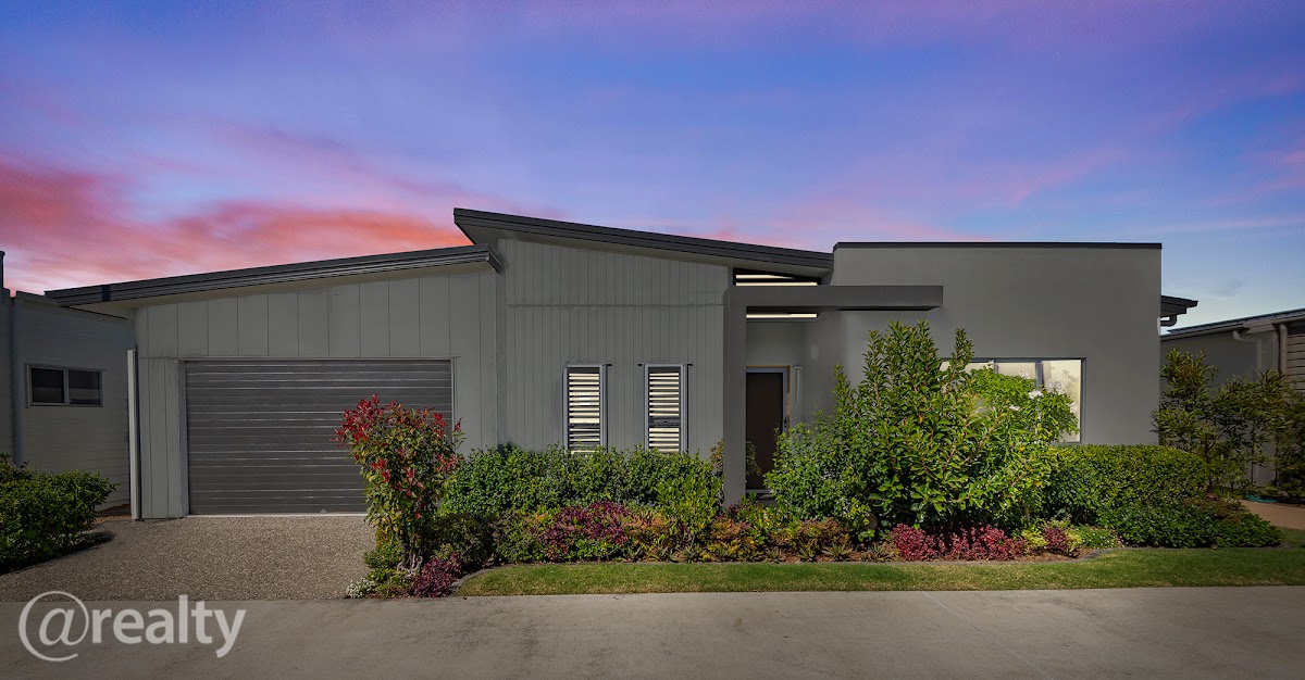The 160 square meter single-storey house has two bedrooms, multi-purpose room, and two bathrooms, making it ideal for a couple looking to downsize in style. There is also a spacious 1.5 garage and large outdoor entertaining area.