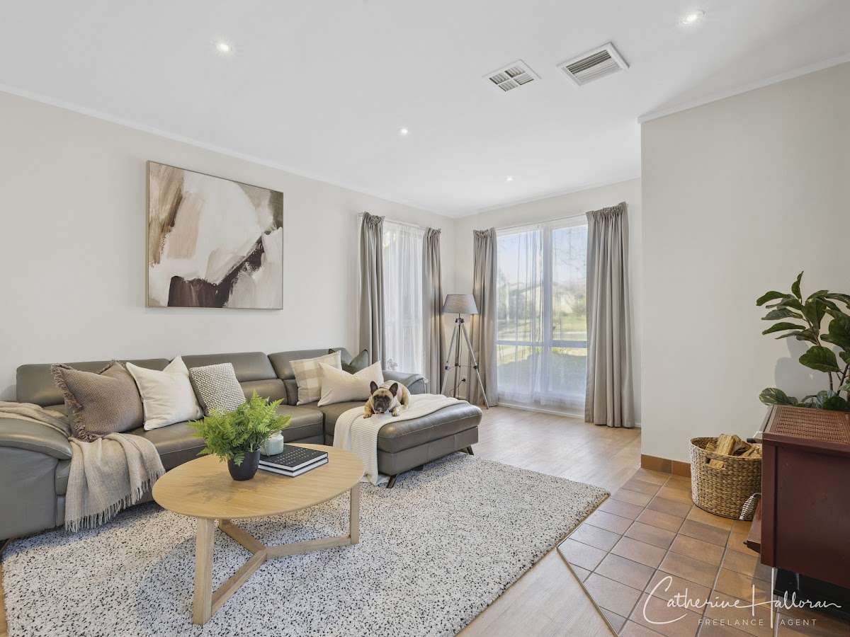 The heart of the home is a modern kitchen with quality Bosch appliances, stone benchtops and a bright skylight overhead. Separate lounge, dining and family rooms, create a real sense of comfort and space, while durable Karndean timber-look floors add lasting warmth and style. A covered rear deck overlooks a private backyard, framed by established gardens and fruit trees – where you can relax with friends or just enjoy the outlook. From fruit trees to veggie patches, there’s space to garden, play or simply unwind in your own green retreat. The secure yard, complete with 2 large sheds, aviary, garden beds and plenty of lawn, makes it a great option for families, downsizers and pet owners alike!