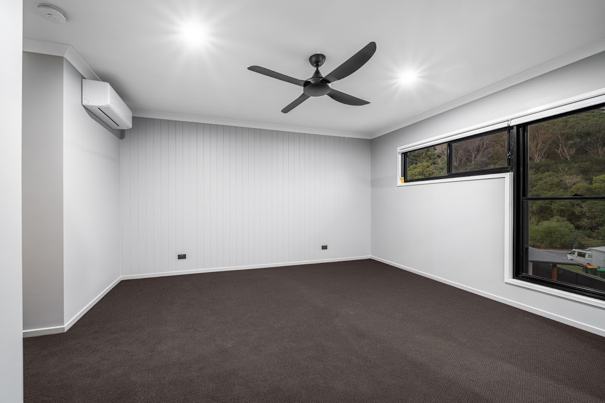 * Ceiling fans, 2.55 metres ceilings, window blinds included.