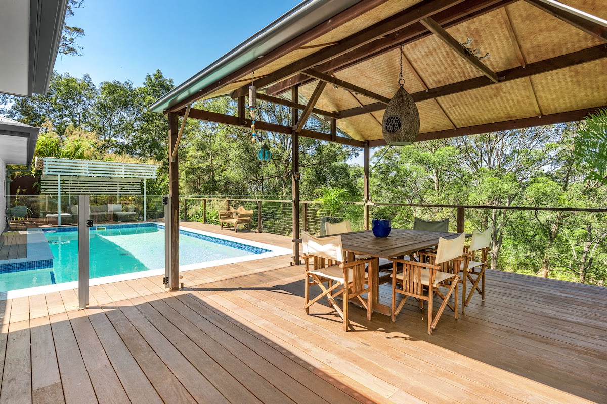 • An expansive timber deck with gazebo overlooking the sparkling pool