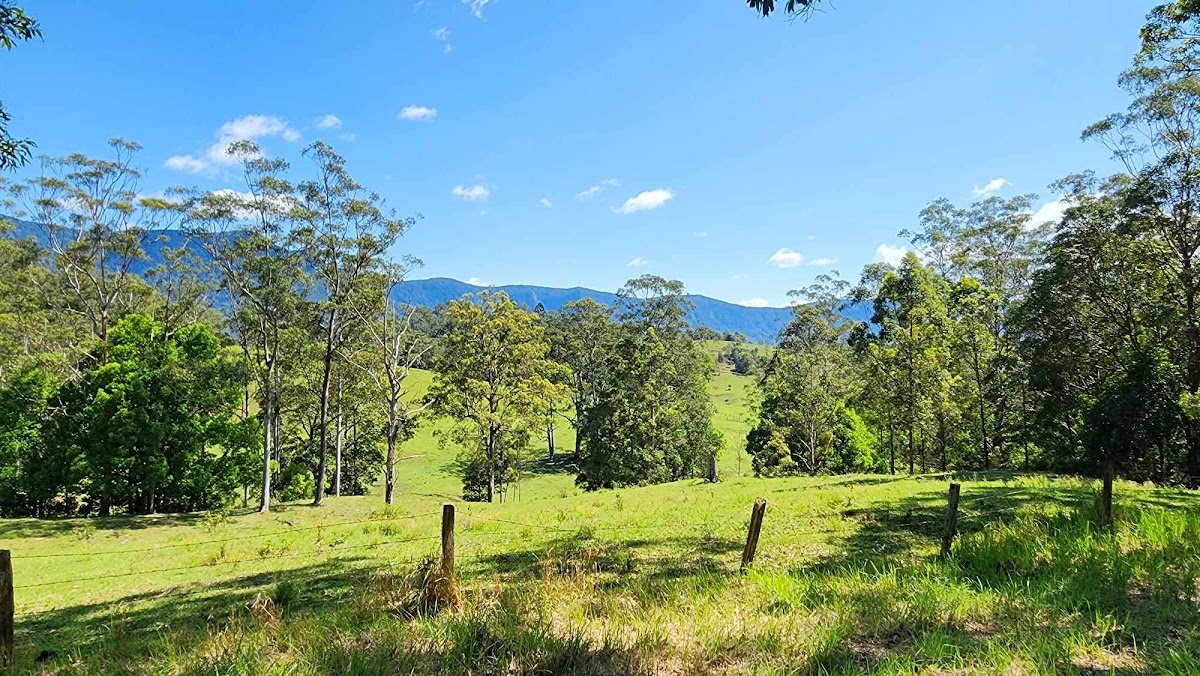 There is a creek on one boundary and views to the Border Ranges on the other, plenty of useable land to plant out your edibles and lots of room for the chooks and even some small animals. You have direct access to the Wollumbin National Park just a few hundred metres away. There is a small rainwater tank, small solar array, porta-loo setup…all you need is the firepit and outdoor bbq (although there is a small van kitchennette) and you are set to getaway from it all.