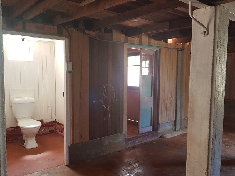 Step onto the traditional front porch (mind the slightly wobbly steps for now) and you’re welcomed by charming casement windows and a surprisingly generous open-plan lounge, kitchen and dining area. The central living space is larger than expected and absolutely ready for its comeback moment.