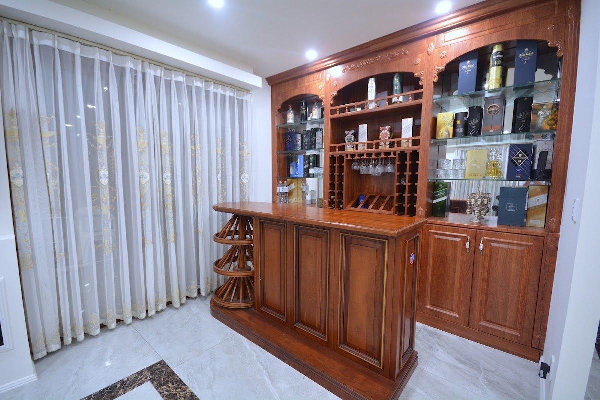Solid teak bar for all your special drinks. 80 mm stone waterfall benches, double glassed windors and doors.