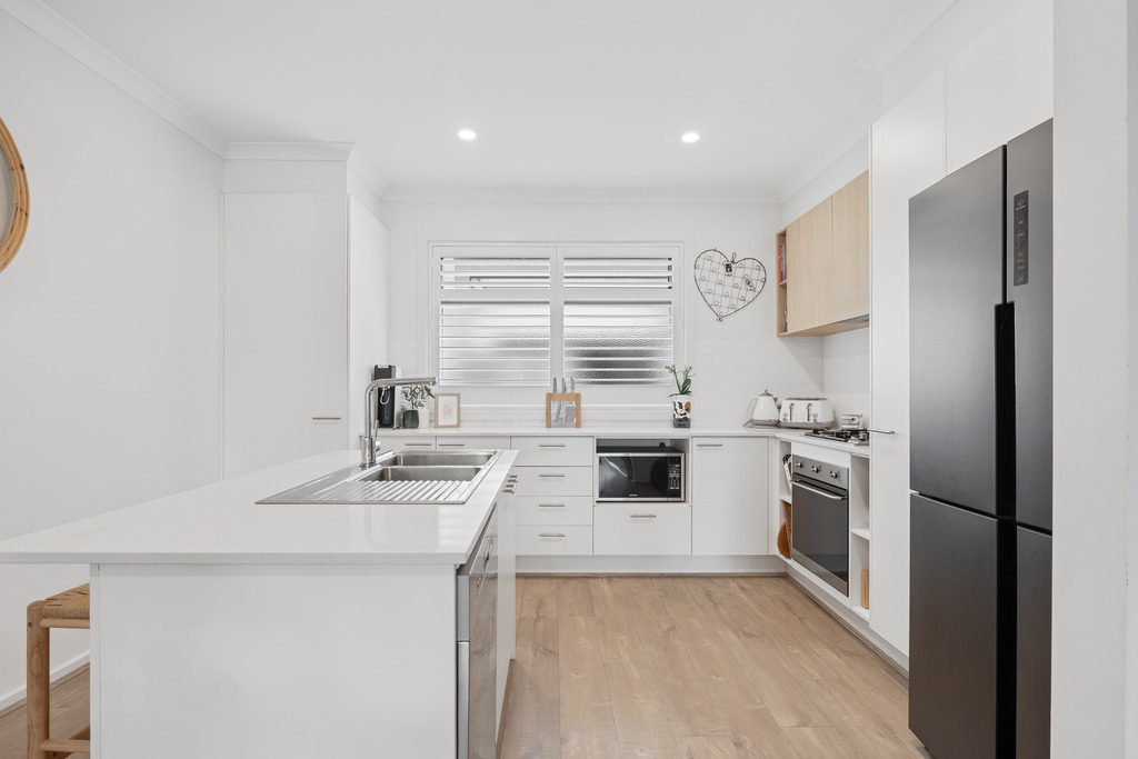 Thoughtfully designed and finished with quality appointments, the interior has been crafted to convey a contemporary feel with sleek floorboards and plantation shutters complementing the open plan living, dining and stainless steel equipped kitchen.