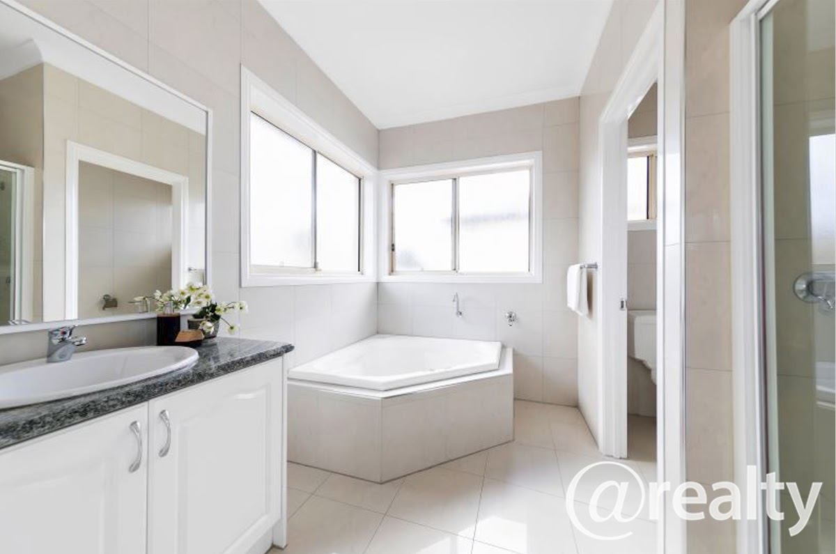 With an impressive wide entrance, the grand staircase leads to an upstairs living area with four big bedrooms, including a primary main bedroom with a walk-in wardrobe and a massive shower, bath and double vanity. Three other bedrooms also have walk-in wardrobes and a central bathroom with a separate toilet. A retreat/ family room and a balcony complete the upper level.