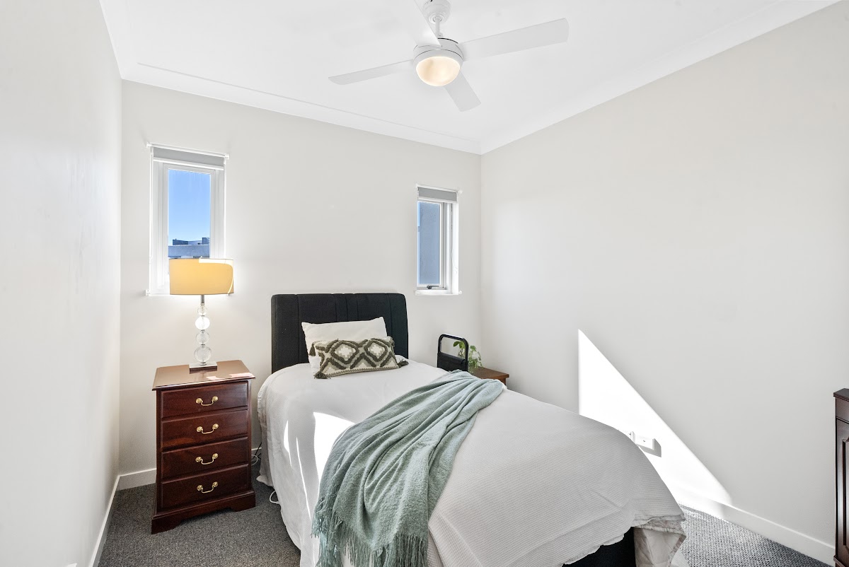 Bedroom 2 is large with ample space for a queen sized bed if required also has North facing windows looking for added light. Ceiling fan and new carpets