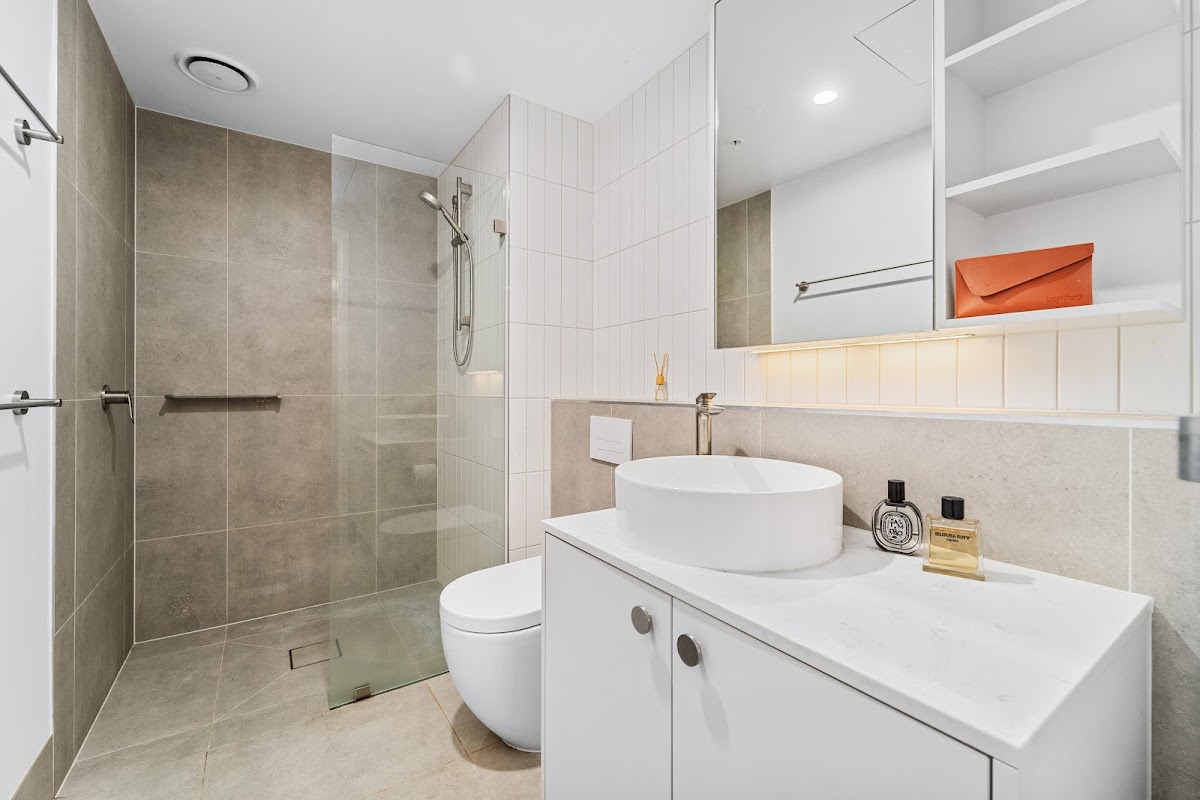 Sleek bathroom with quality finishes and great storage