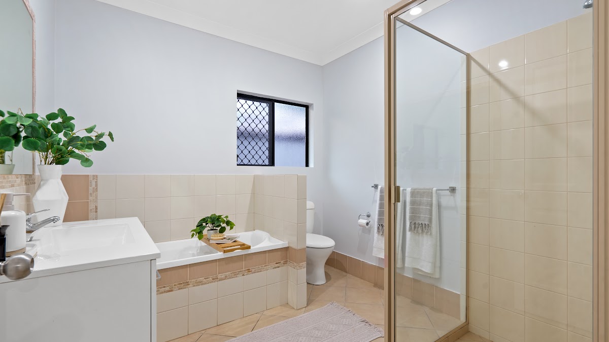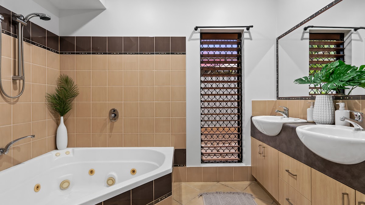 – Generous main bedroom is perfectly positioned for privacy with a lovely garden outlook, large walk-in wardrobe and an ensuite with double basins, spa bath with shower and toilet