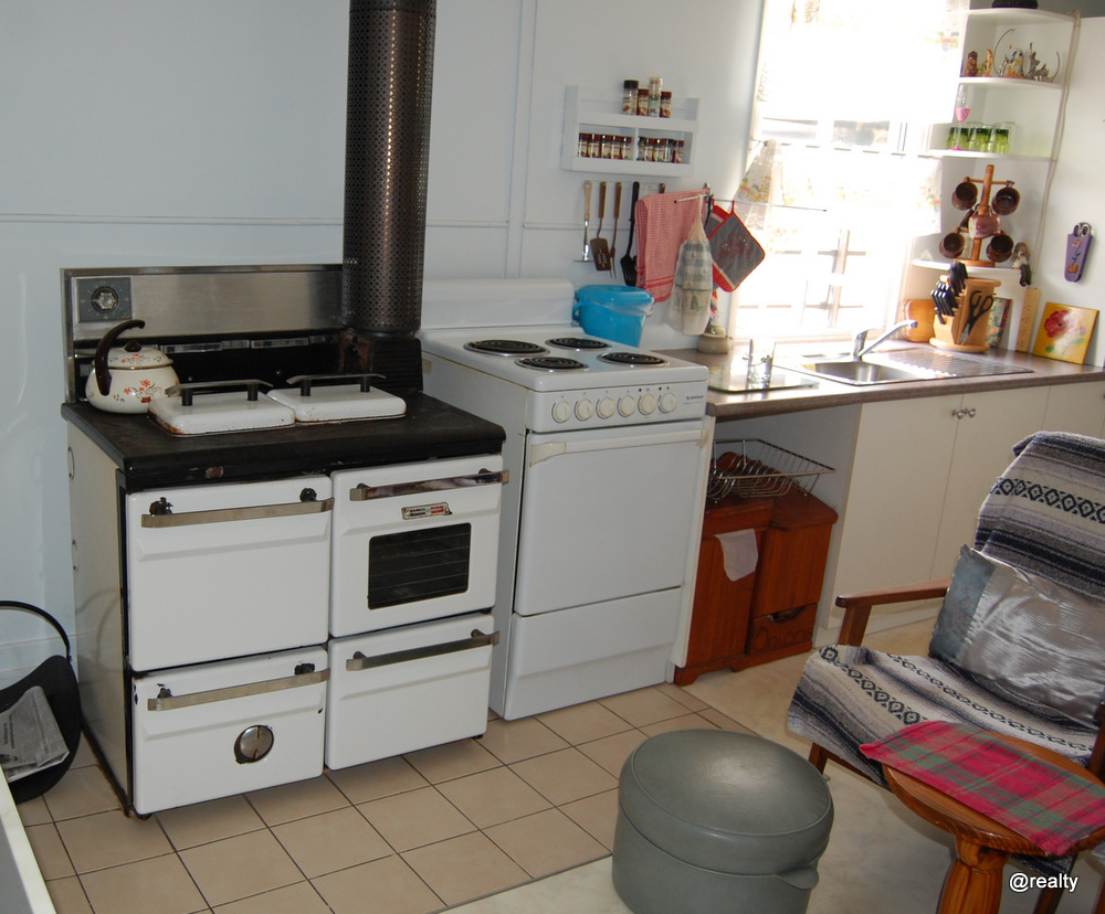 -Eat-in country kitchen with original wood stove still in use for heating and cooking; upright electric stove. This area also has a split system air con.
