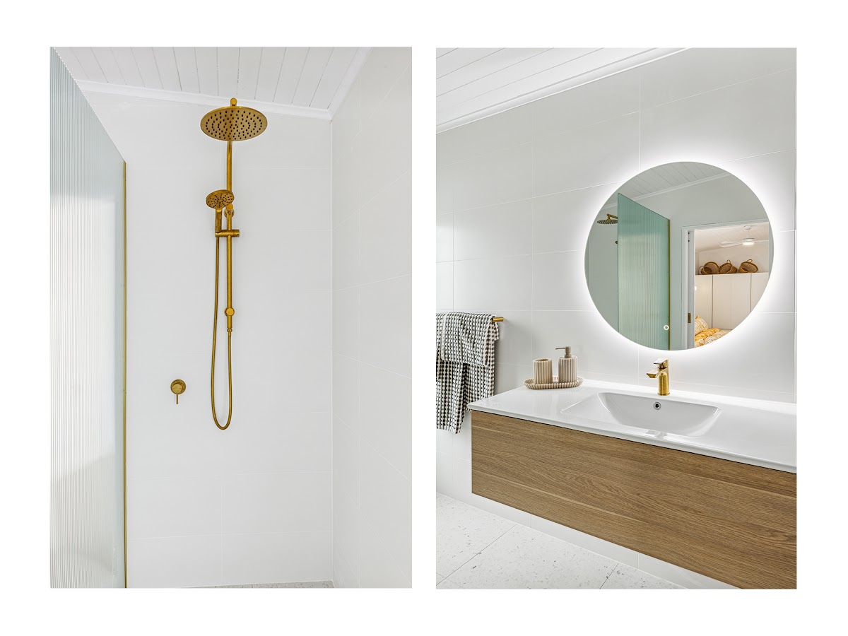 Not a project for the faint hearted; #69 has been so extensively renovated that you could practically call her near new. From foundation work to the renewed deck, new roofing, new plumbing, wiring, a brand-new master bathroom, the conversion of a study to create a luxury ensuite, a new kitchen & laundry, new fans, light fittings, security screens, window dressings and a full paint inside and out…to say the least. Plus, we have given our shed new life and erected a privacy fence out front. Oh, and what about that front door! She’s a gift that just keeps giving.