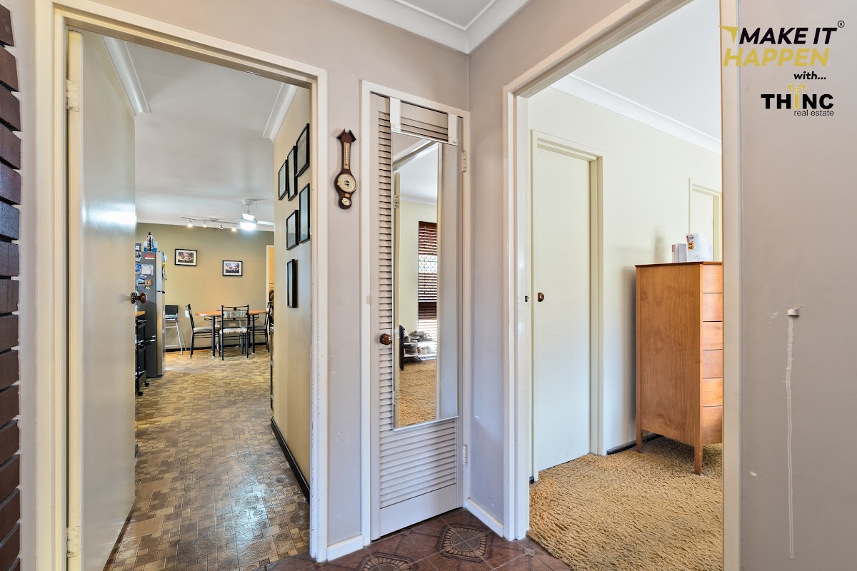 Set on a generous 713 sqm block, this solid brick and tile residence features three bedrooms. The master bedroom, located at the front and filled with natural light, with built-in robe and convenient access to the main bathroom as a semi-ensuite. The two other good-sized bedrooms are located toward the back of the house and also have some built-in storage.