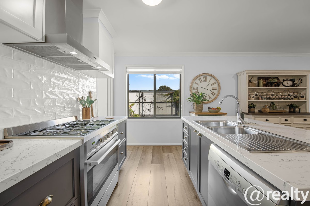 Step inside and be greeted by spacious open-plan living, complete with premium finishes, including 40mm Caesarstone benchtops, an Attica-designed kitchen, and quality flooring throughout. Year-round comfort is assured with a powerful 7.3kW split system, and eco-conscious buyers will love the 6.7kW solar system, rainwater tank, and NBN connection already in place.