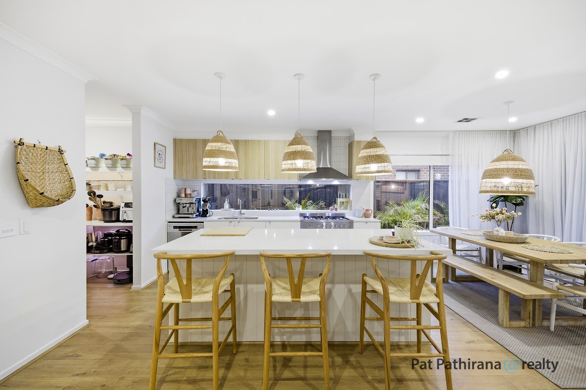 Accommodation is equally impressive, comprising four generous bedrooms including a luxurious master suite complete with walk-in robe and private ensuite. Three additional bedrooms are thoughtfully positioned and serviced by a central bathroom, providing comfort and privacy for the entire family. The designer kitchen anchors the home with premium appliances, stone finishes and a spacious walk-in pantry, while a secure double remote garage with internal access adds everyday convenience.