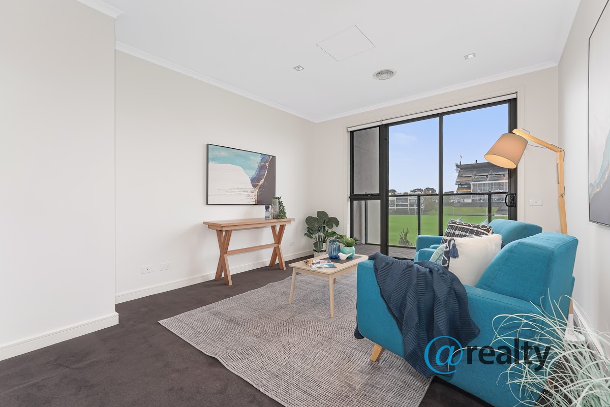 Indulge in the most spectacular views from every outdoor aspect of this unique 3 Bedroom, 2 bathroom tri-level residence, delivering contemporary style, supreme quality and captivating oval views. Designed to capture the sights of the historic grand stand and oval of renowned Waverley Park, the generous open-plan Living/Dining zone featuring a sublime stone/Smeg Kitchen opens at one end to a private entertaining alfresco and at the other to a large balcony overlooking the oval. The upper-level Bedroom also have their own balcony, whilst the lower-level Bedrooms are advantaged by a stunning private courtyard. Luxury is further heightened by a powder room, storage room, ducted heating/AC, ducted vacuum, study nook, and double garage.