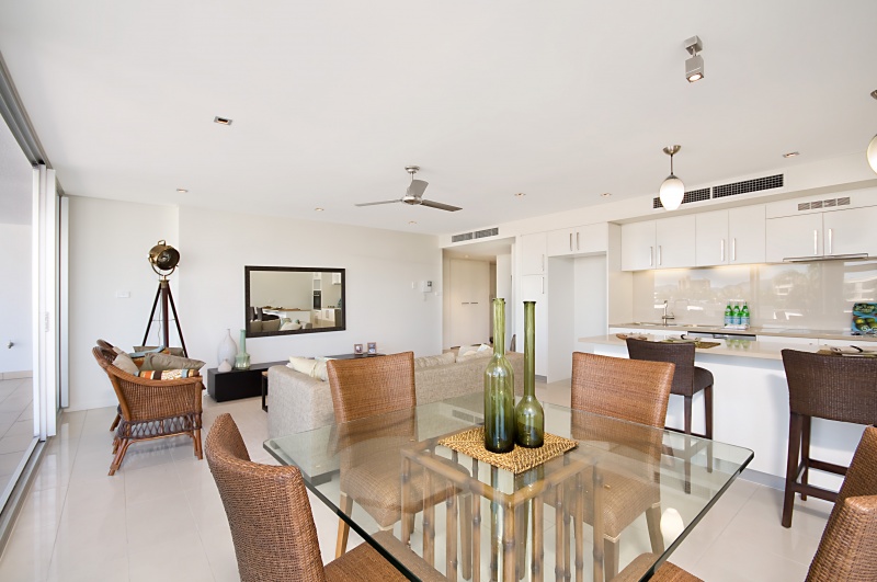 It enjoys a massive north facing entertainer’s balcony that takes full advantage of the breathtaking views from Castle Hill, over the marina and out to Magnetic Island. Of a day relax while watching the sailing boats leaving the marina and heading up Ross Creek, and of an evening sit back and take in the sparkling city lights. All while being cooled by year round sea breezes.