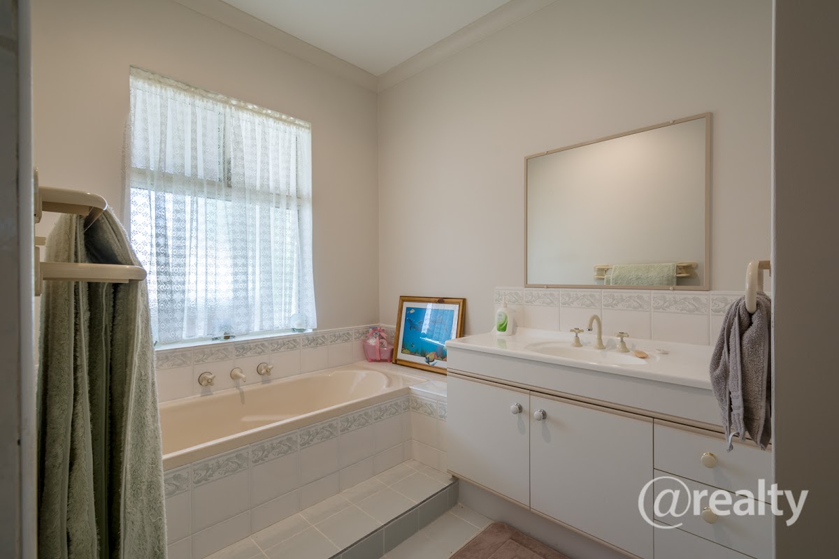 Past the kitchen is a large office area that connects to a gorgeous enclosed veranda/sleep out, facing the back garden. This informal lounge boasts large windows, jarrah floorboards and big glass sliding doors to the undercover open back patio.