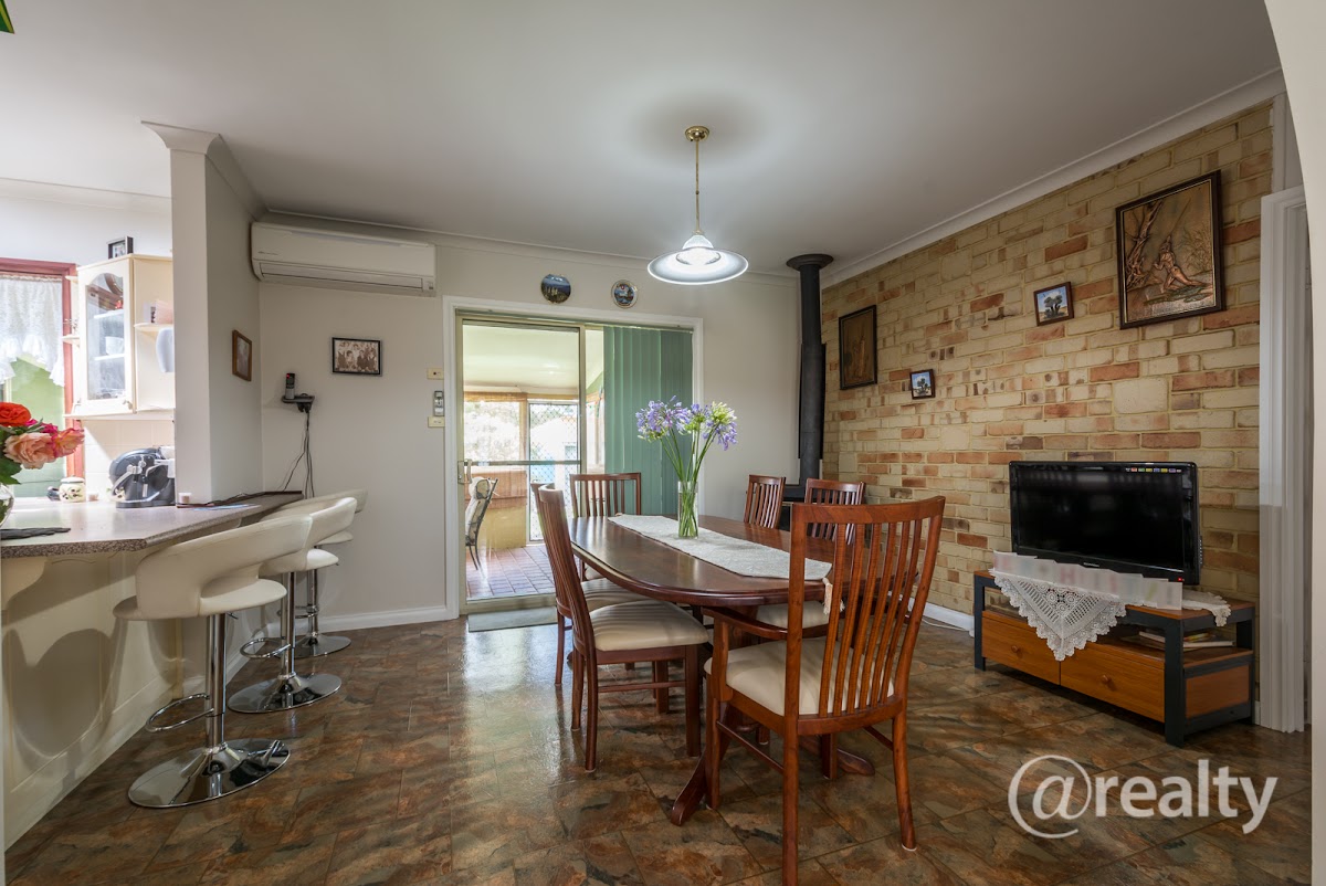 Straight ahead is the open plan dining/kitchen area with a lovely fire place that keeps the whole house cosy in winter plus an air conditioner to keep the temperature just right in summer. There is direct entry to an informal undercover patio from the dining area.