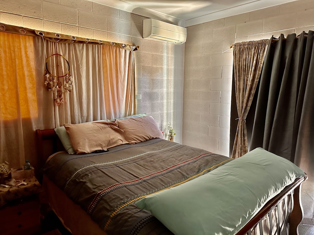 Bathroom has a bathtub, and shower cubicle, there is a seperate area for vanity and a seperate toilet. lots of storage