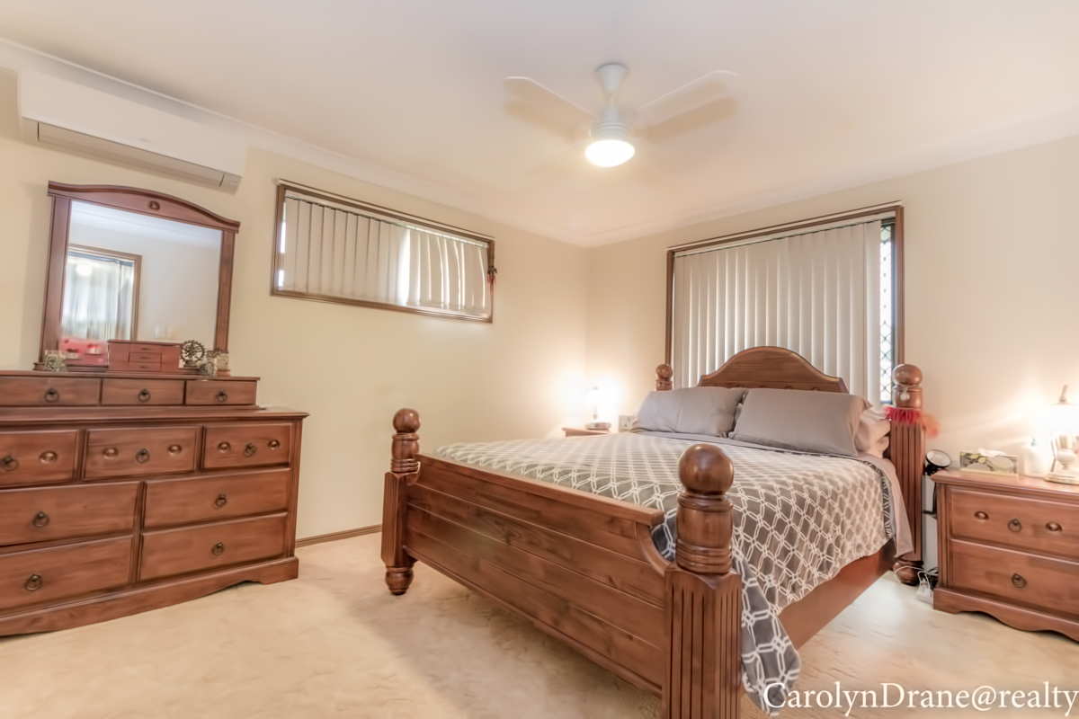 Complete with three bedrooms, the air conditioned master bedroom has a walk in robe and walk through bathroom. The bedrooms have built in robes with ceiling fans. Two separate living areas fully air conditioned , light and airy kitchen, bathroom, covered patio at rear, double carport, shed, plus side access to bring in a boat/caravan or additional vehicle(s); it is the perfect size for a couple or small family.