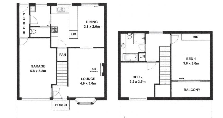 UPSTAIRS THERE ARE 2 GOOD SIZE BEDROOMS AND BATHROOM.