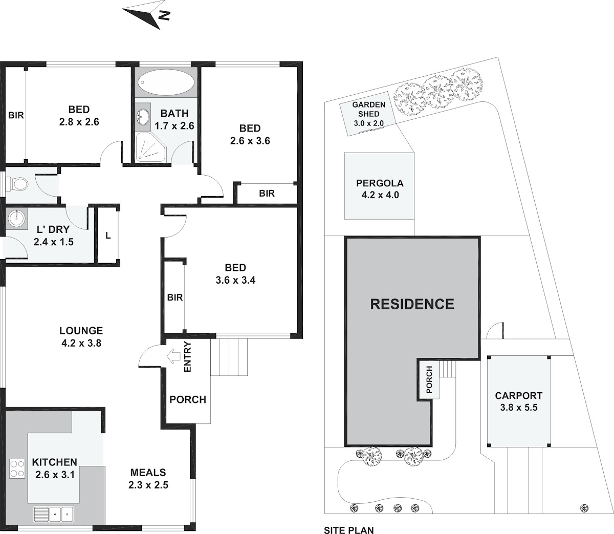 – Large pergola, solid brick and tile carport, shed and paved under-house storage