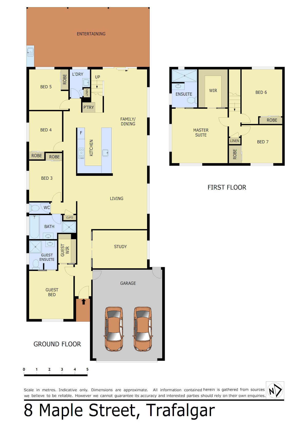 If you are looking for a home that suits a large family with excellent accommodation and well located to local Primary and Secondary Schools and all Trafalgar has to offer, you can’t go past this property. Featuring 7 bedrooms, five of which have BIRS plus WIRS to the two Master bedrooms. Three bathrooms with two impressive ensuites servicing the master bedrooms and a third family bathroom as well. Three spacious living areas including family dining, living room and a fantastic undercover entertaining area measuring 9.8M x4.7M. Study/Home office as well. Stunning kitchen with stone benchtops, glass splashbacks, 900 mm stove and range hood, deep bowl sink, dish drawers and good size pantry. Other notable features are polished timber flooring, ducted reverse cycle heating and cooling upstairs and down, gas ducted heating, solar boosted hot water. Dbl remote garage with internal and rear door access. Low maintenance rear yard taking advantage of the park directly opposite. A home with many points of differences! For a private inspection contact Peter Powell on 0458 555 099.