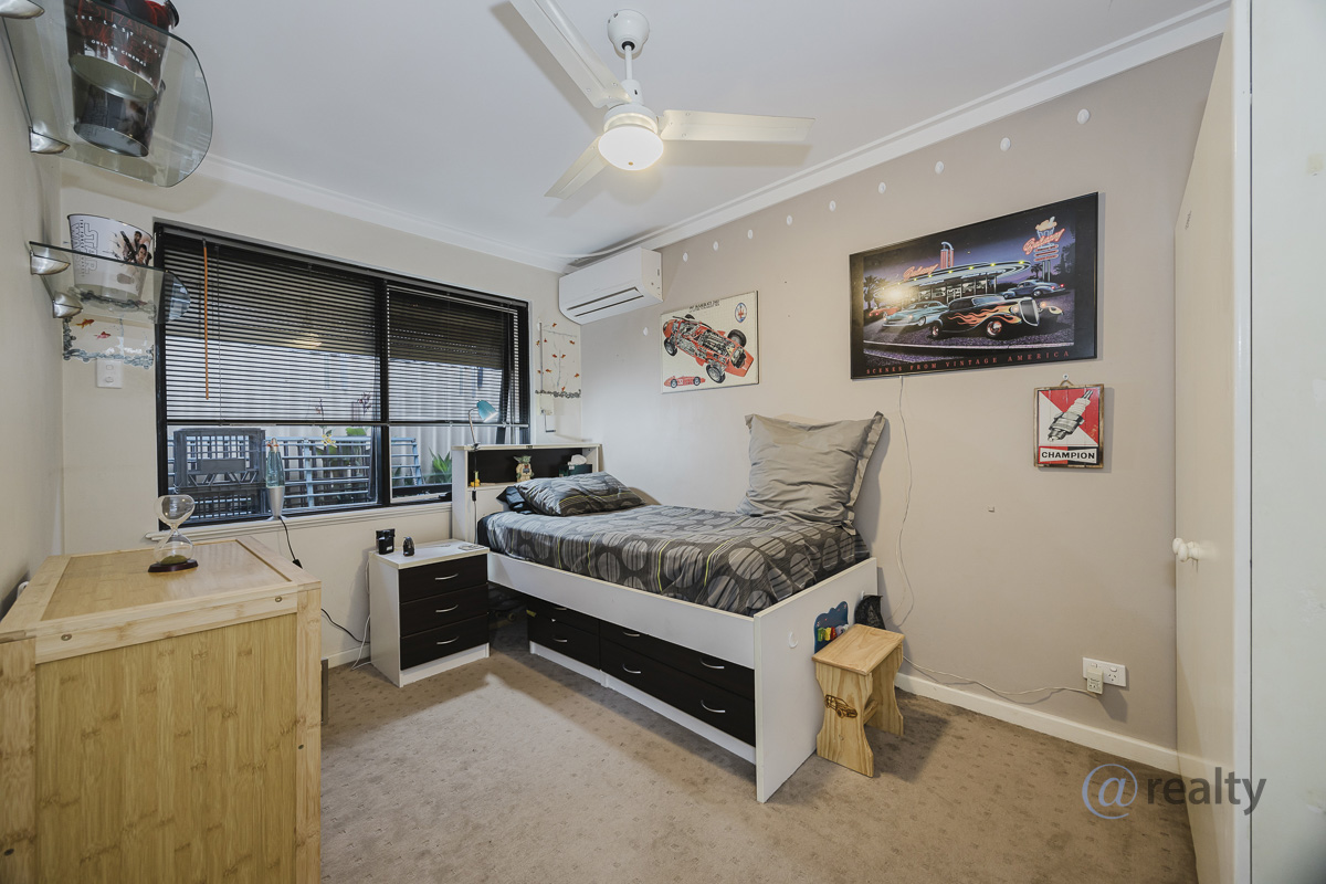 – Master bedroom queen size with electric roller shutters on windows, reverse cycle aircon, ceiling fan