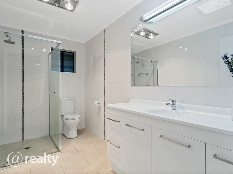 As you enter the main bedroom, the north facing window fills the large space with light and warmth, great for the winter months. The Ensuite reveals itself in an impressive way through the BIR. Pamper yourself in this bright modern Ensuite which has twin shower heads for those busy mornings.