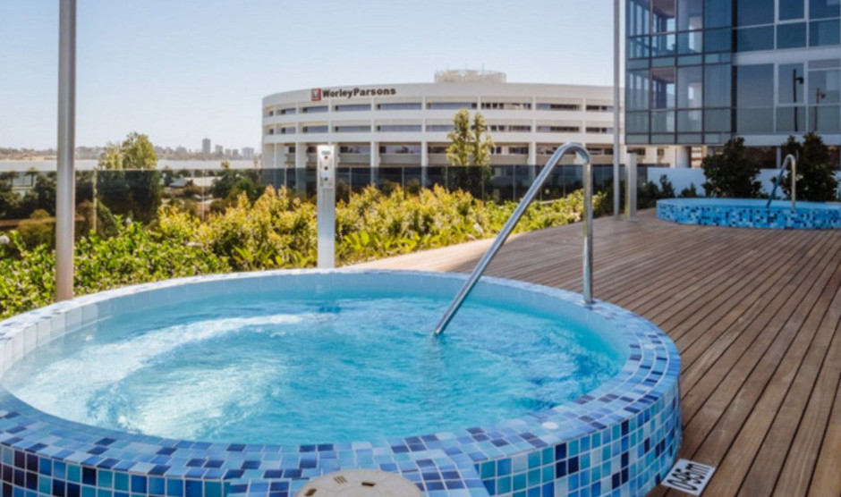 A swimming pool (4th floor) SPA/GYM/ is further inside the building.