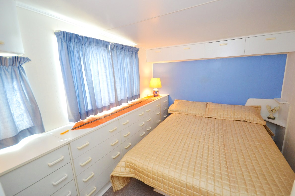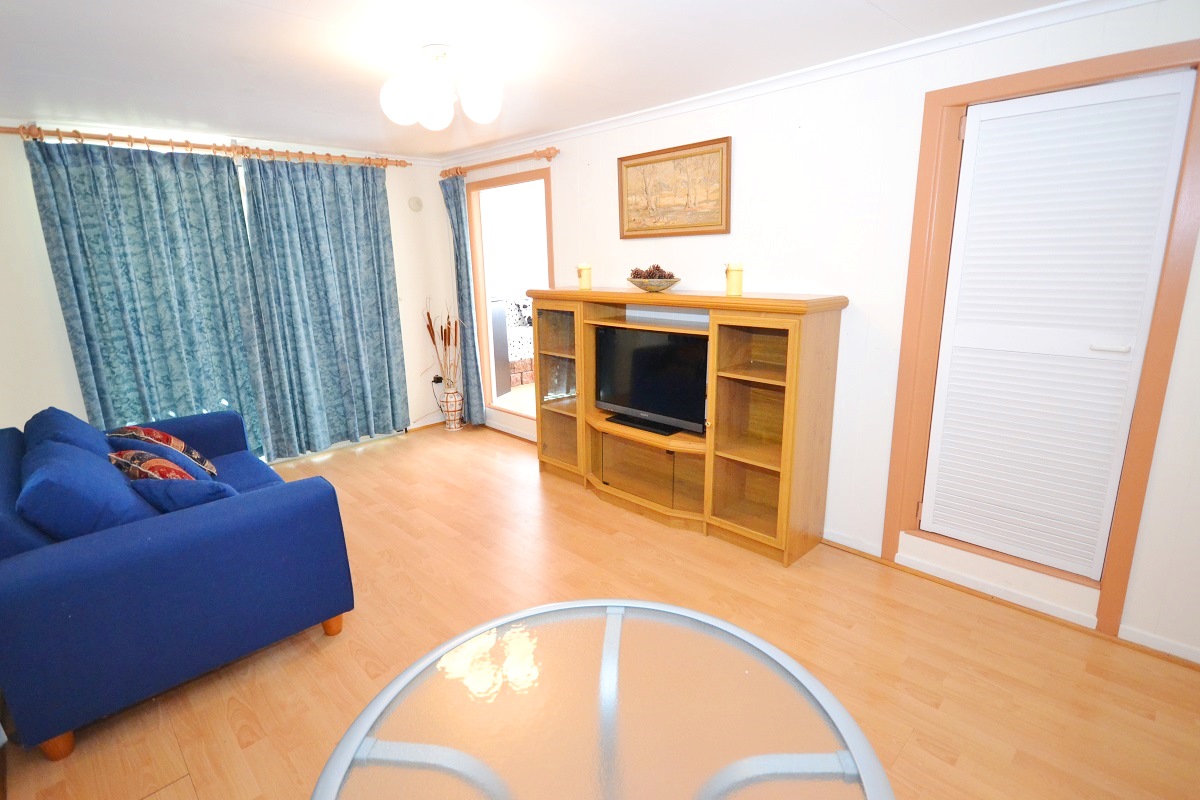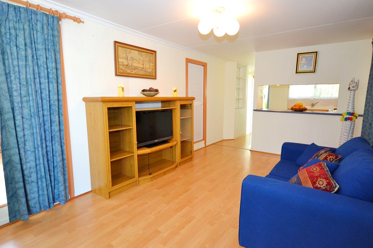 This is a large insulated, steel framed home/caravan and large annex, with plenty of living spaces and HEAPS AND HEAPS of storage space!!!! THERE IS EVEN A SAFE!! You wouldn’t know it is a caravan & annex at all, to look from the front, OR the inside! Everything has been so well finished and decorated, the interior has just been given a fresh coat of paint! There are cupboards everywhere!! There is air conditioning in the living room and 2 bedrooms. One bedroom is set up to be a 2nd living room if required, (with decorative REAL brick feature walls), so you can use however you wish. The main bedroom has 2 entrances, one is conveniently located close to the bathroom. The renovated bathroom is beautiful and modern and has a large shower enclosure with grab handle. There is lovely wood-grain flooring throughout the living areas and kitchen.