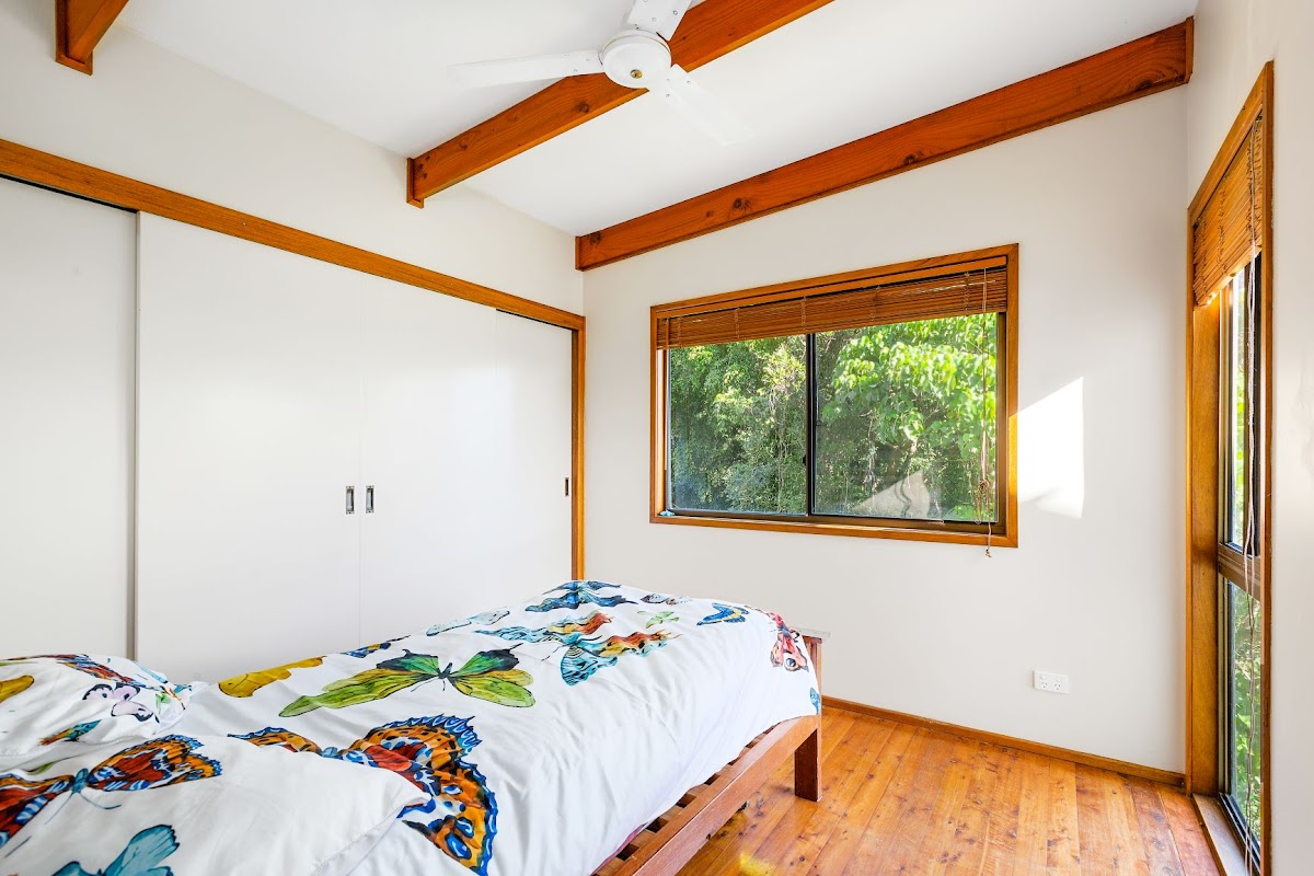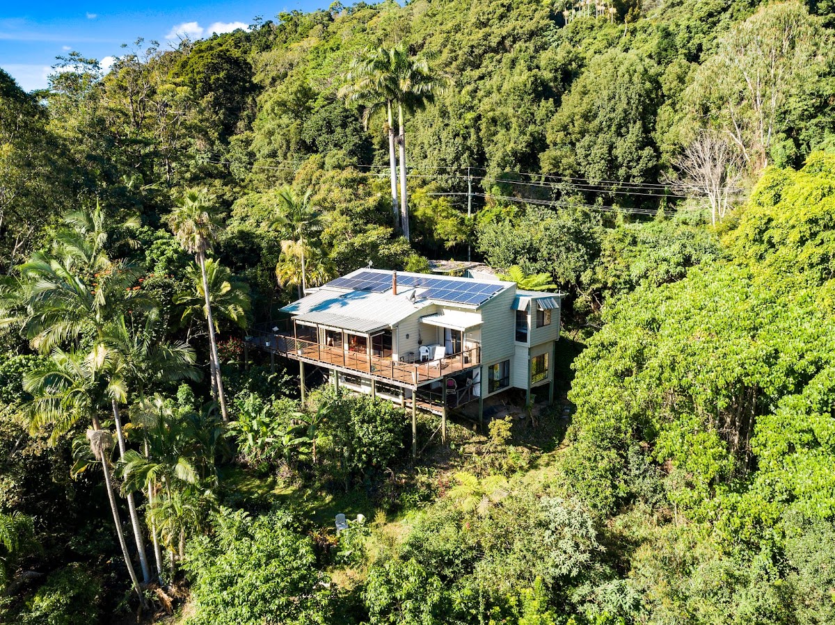 There is a downstairs “studio” which would make great guest accommodation or the potential for a neat passive income. The surrounds are a thoughtfully planted out 7.5 acres of native rainforest species flora including a large array of tropical fruit trees which attracts a prolific assortment of wildlife, including eagles which can frequently be seen flying from your extra large entertaining deck. This property is for those seeking tranquility, privacy, a unique character home in a tightly held position in one of the areas premier locations just 10 minutes to Cabarita beach and the arts and foodie hub of Murwillumbah.