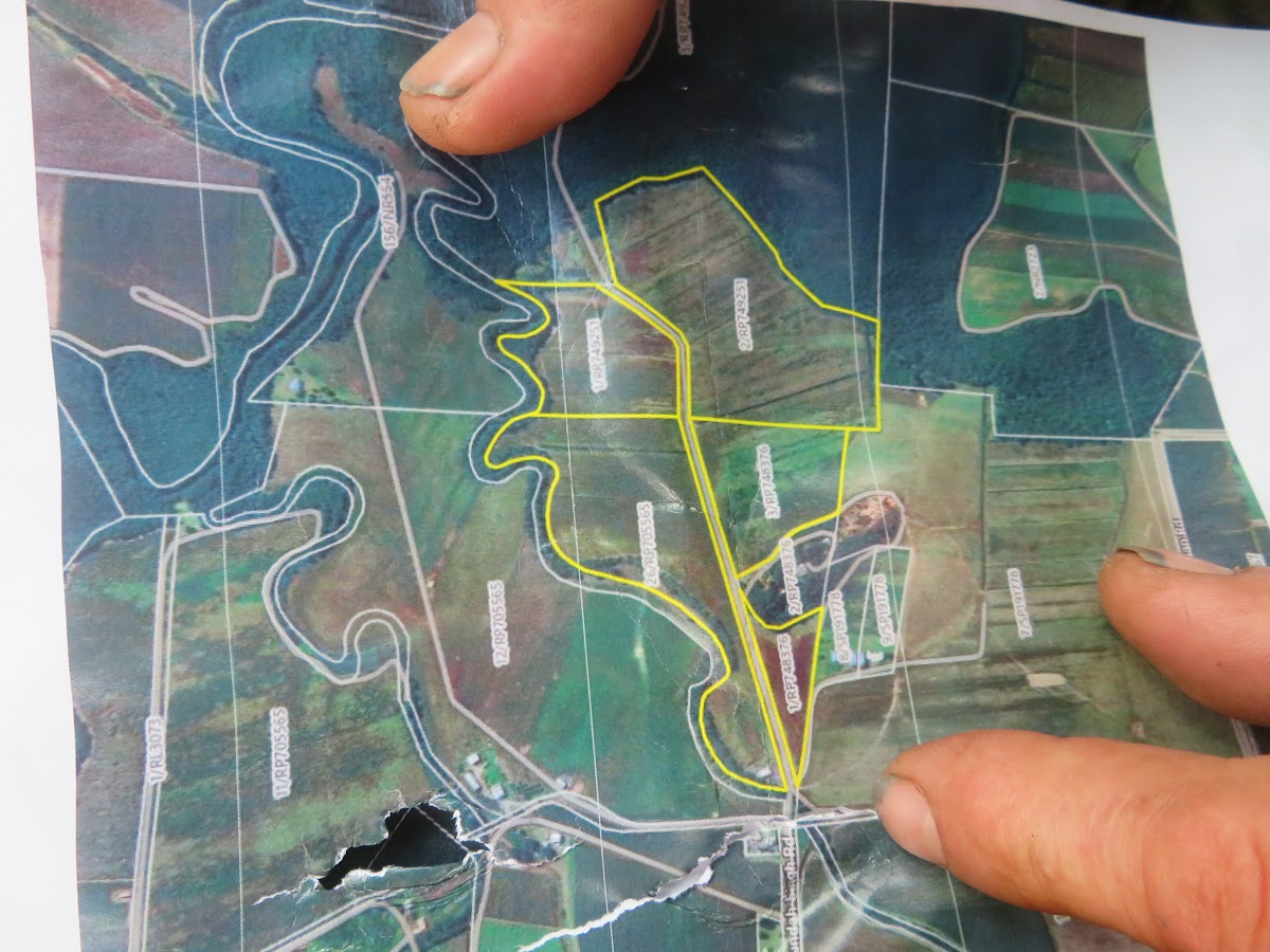 The bigger block (yellow) of 11.179ha or 27.62acres of flat land with a farm shed and bordered by Daru Creek. (Creek Block). This land is ideal for cattle or farming. Is well drained with man made ditches to take rainwater back to the creek.