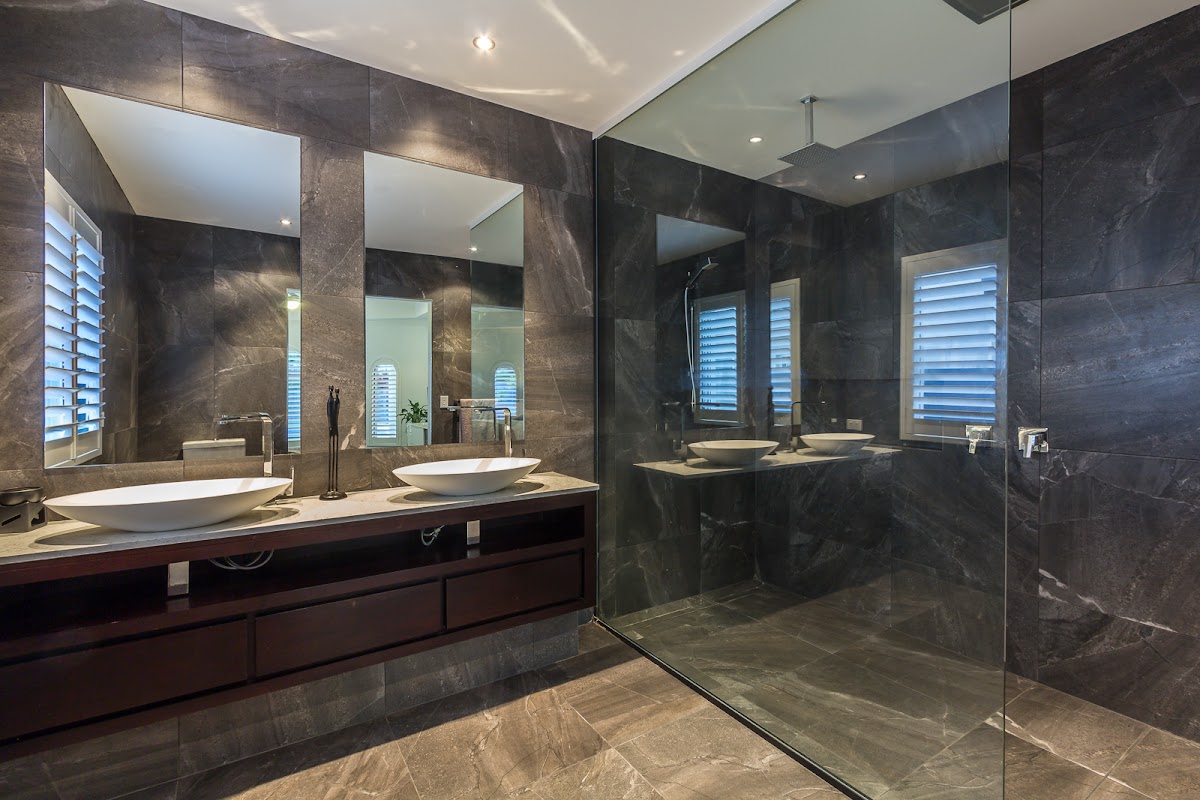 The ground floor luxury master bedroom incorporates an exquisite bespoke ensuite bathroom designed with luxury and function in mind. Stylish double vanities, a large waterfall shower, substantial walk in robe and pool views complete this sumptuous master suite.