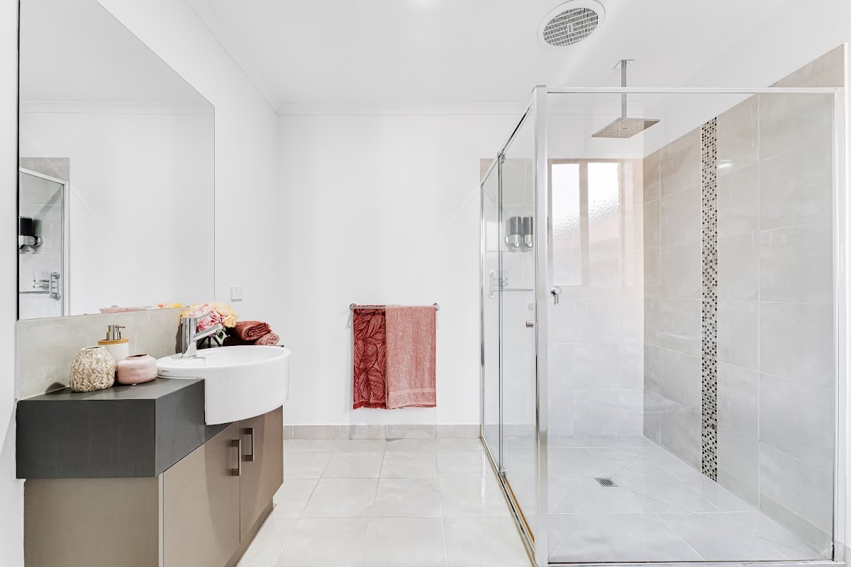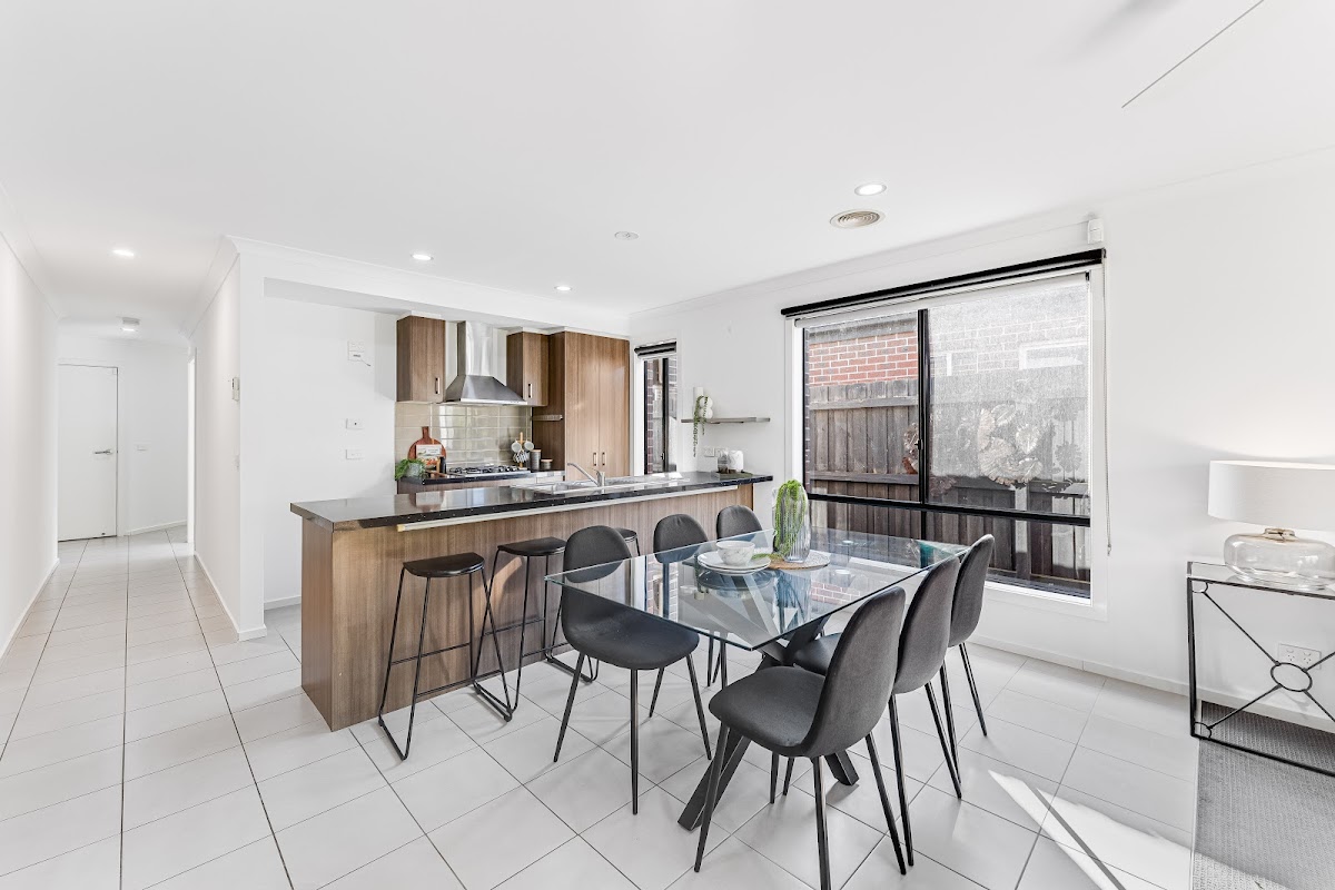 Werribee town centre and the station are also within easy reach of a home where a bright open-plan living area featuring a kitchen with large stone benches, stainless steel appliances and great storage are the signature elements.