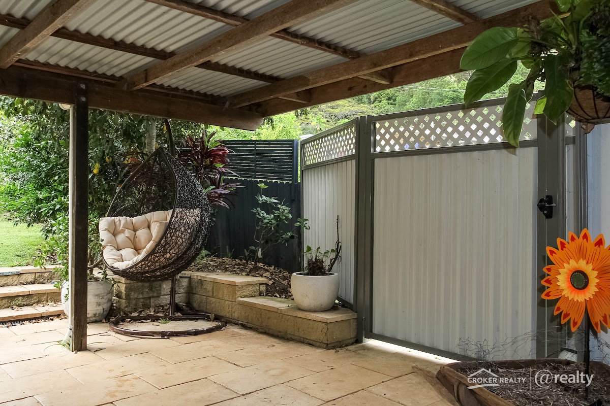 The modern bathroom has a bath and shower and is separate from the toilet, and the laundry opens out to a large undercover entertaining area. The fully fenced backyard is a gardener’s dream, boasting fruit trees, veggie gardens, and a shed, while the chickens enjoy their own fenced space. Relax under the open pergola and soak up the sunshine. The property also benefits from a large solar system, making it both eco-friendly and cost-efficient. Outdoor bush bathroom and composting toilet.