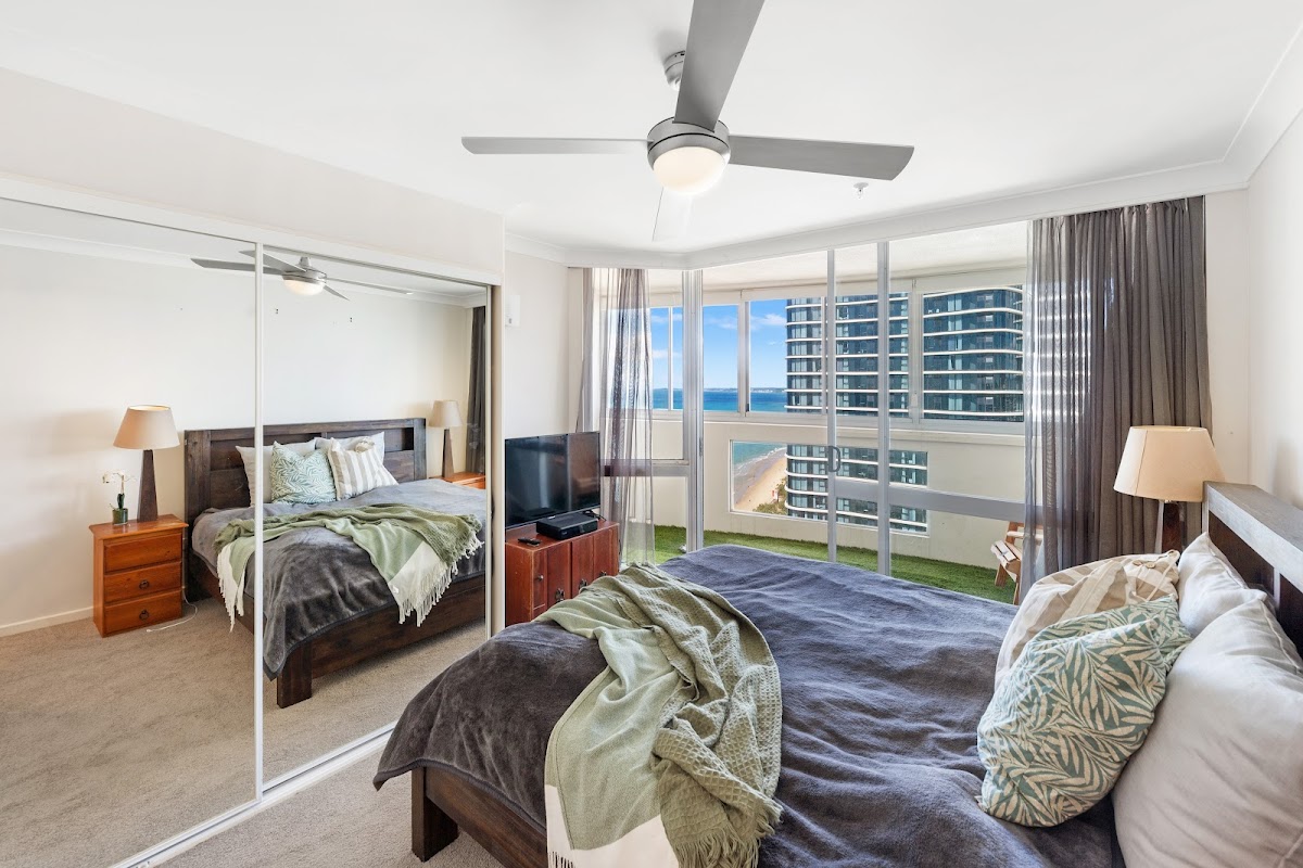 Perched on the 24th floor of the prestigious Focus building, this spacious apartment offers breathtaking, uninterrupted ocean views from all of its balconies. Situated directly opposite lifeguard tower 35 and just a mere 10-second walk to the beach, you’ll enjoy the tranquility of coastal living with the added convenience of being only 400 meters from the bustling Cavill Avenue—perfectly placed to embrace both peace and proximity to the action.