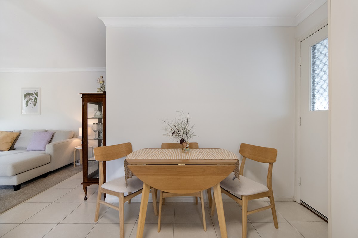The living area has plenty of natural light from the 2 windows and the dining room and kitchen are immediately next to it and with a 2nd exit door leading to the outside carport and undercover area with garden shed.