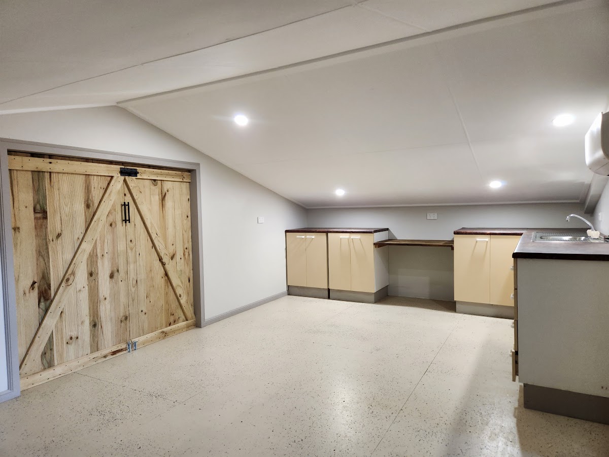 This fully fenced allotment is ready to build on. A 14.5m x 7 m powered shed with one-bedroom living quarters is set towards the back of the property. Downstairs are the kitchen, lounge /dining area, and main bathroom. Upstairs is the main bedroom with a built-in robe. It would be great for a teenager’s retreat or caretakers’ unit.
