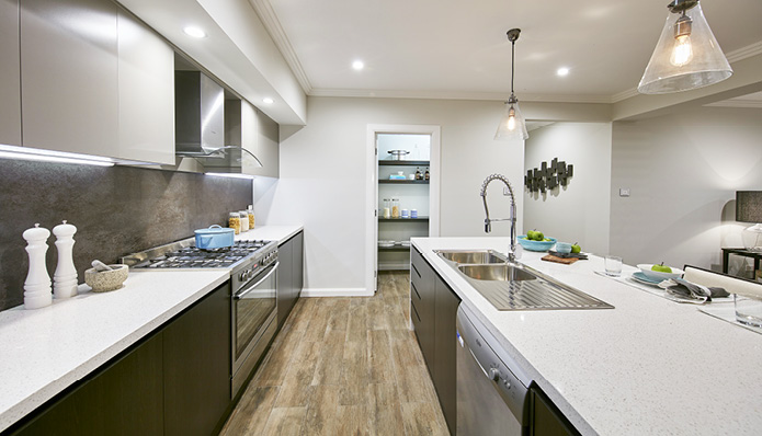 – Gourmet Kitchen complemented by Stone Bench-tops, Pantry & Stainless Steel Gas Appliances